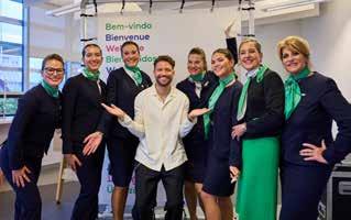 Marloes van Laake (operationeel directeur Transavia), zanger Rolf Sanchez en Marcel de Nooijer (CEO Transavia).