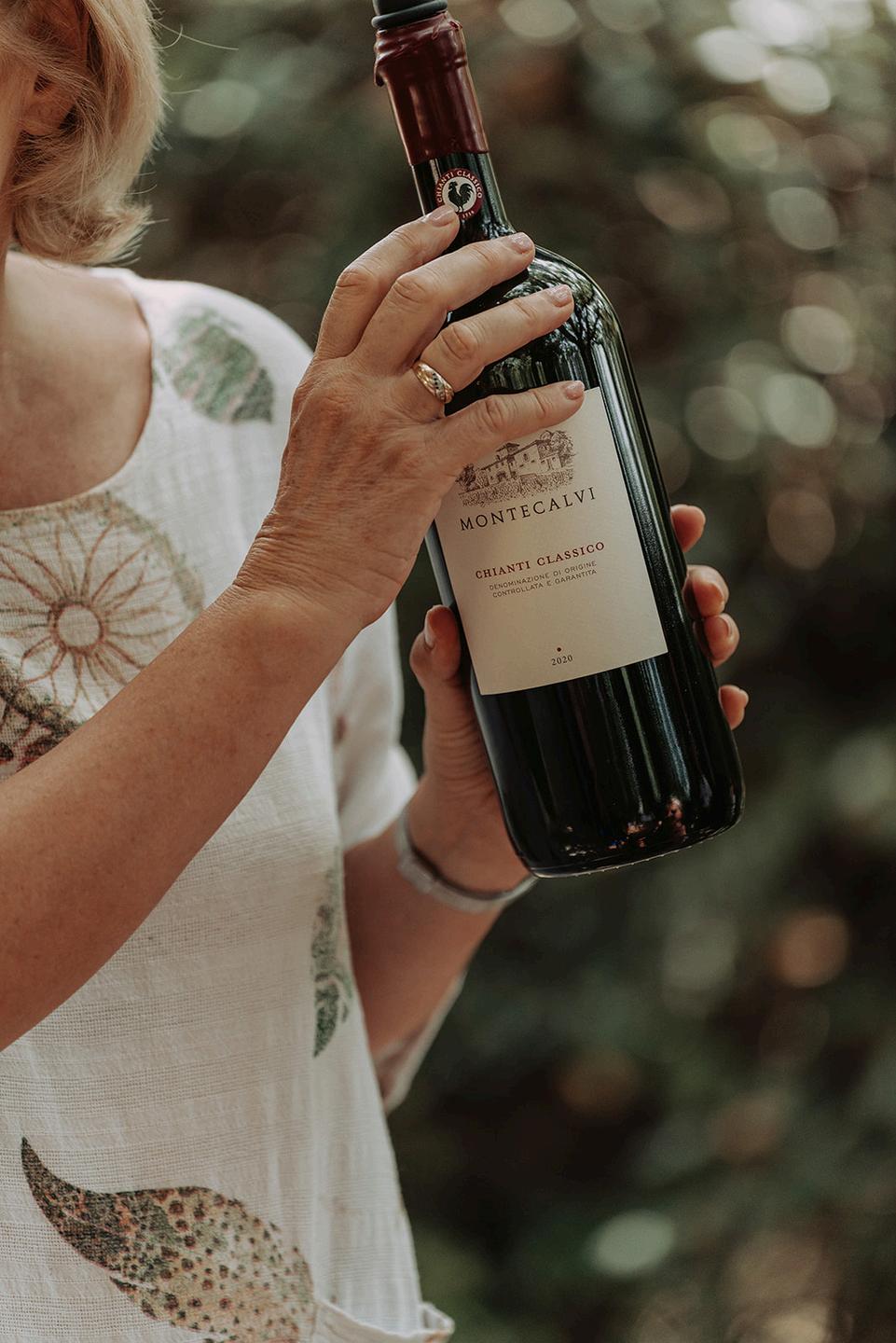 Chianti Classico wordt gemaakt van minimaal 80% Sangiovese-druiven en staat bekend om zijn levendige rode fruittonen, subtiele kruidigheid, frisse zuren en droge afdronk. Veel flessen dragen het herkenbare symbool van de Gallo Nero (zwarte haan), een kwaliteitskeurmerk en symbool van eeuwenoude traditie