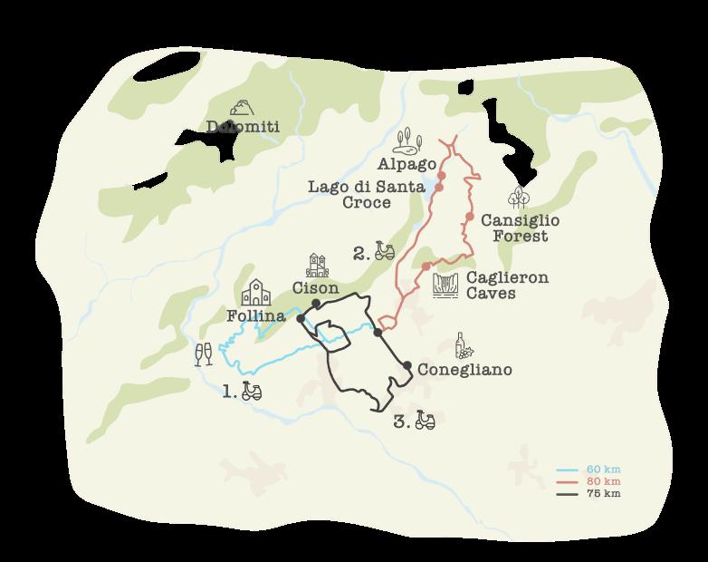 Het vertrekpunt tijdens je trip is gelegen in San Pietro, het hart van de prosecco-streek Vanaf hier heb je de mogelijkheid om drie verschillende routes te volgen, die je de authentieke landelijke schoonheid van de regio laten ontdekken Elke dag kan je zelf kiezen welke route je volgt (met GPS) of kan je onze gids met de groep volgen