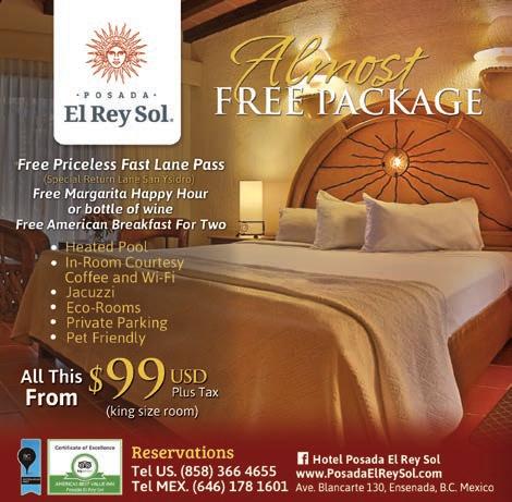 24/7 service, please use our website, bajatraveleronline.com The magazine assumes no responsibility for the safekeeping or return of unsolicited manuscripts, photographs, artwork, or other material. All rights reserved. Reproduction in part or in whole without the written permission of the publisher is strictly prohibited. To order back issues: (619) 216-8035. To order article reprints of 500 or more: (619) 216-8035.