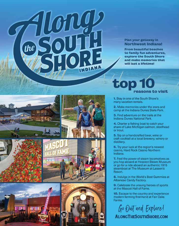 Check out our regular sections: Destination, Outdoor, Culinary, and Arts. And as always, be sure and check out our website, travelindiana.com for even more trip ideas.