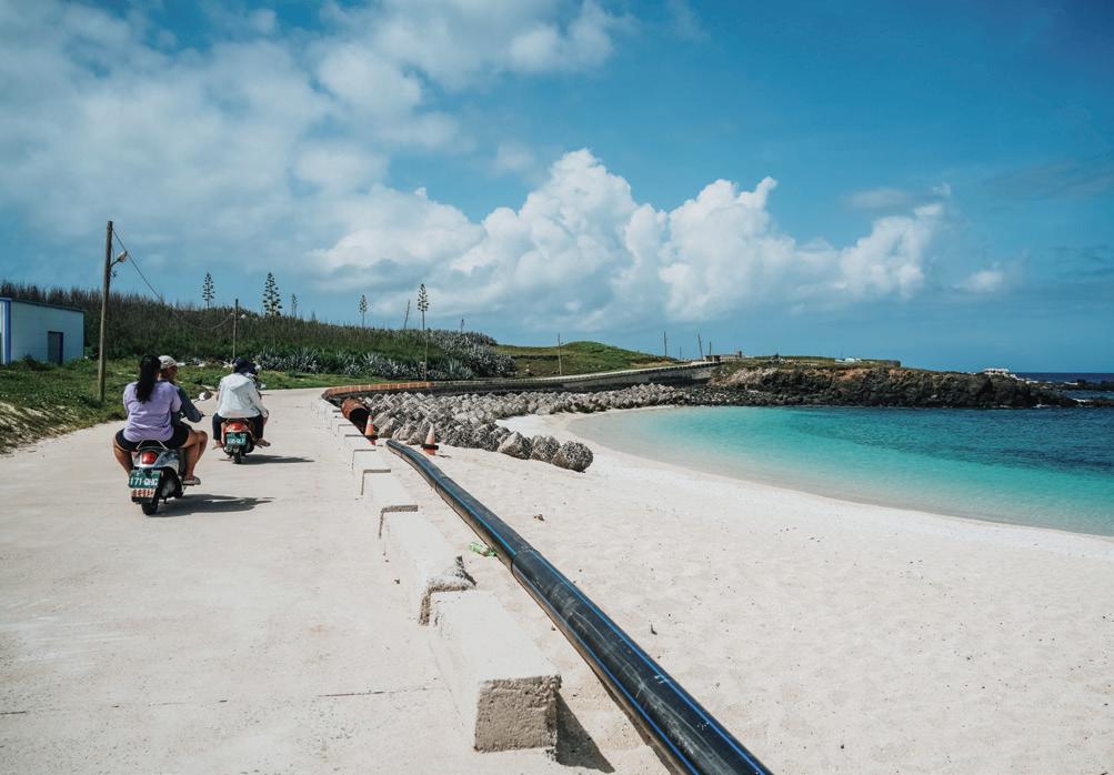 In one accompanying article you’ll be spending a day walking old villages on Penghu main island with rich heritage harvests, along with such other villageassociated tourist attractions as an underground military-tunnel complex and a lime-burning kiln facility. In another we introduce the robust Penghu events calendar, filled with large-scale happenings throughout the year to entice visitors through every season, the biggest joyfest being the Penghu International Fireworks Festival. And we round things out Penghu-wise in our regular Local Stay article with a look at stylish great-value accommodations in three different areas of Penghu main island that are especially enticing for cyclists – cycling the islands being a favorite tourist pursuit.
