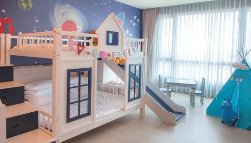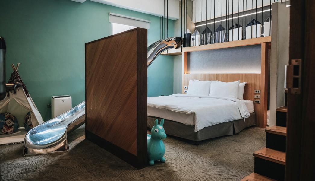 Taitung is well known for its beautiful mountains and rivers. Rice Resort Hotel is like an idyllic rural castle designed with the county’s specialty rice as its theme. The hotel has ten floors with a total of 100 guestrooms. Among its facilities are an outdoor swimming pool, a Chubby Choice Star Bar, a children's playground, a gym, and a massage area. It’s like a fun paradise for the whole family. In the high-ceiling firstfloor lobby of the hotel you will see design elements representative of Taitung, including lights in the shape of rice ears and grains of rice. The marble-textured floor and the beige walls give the space a soft and elegant feel.