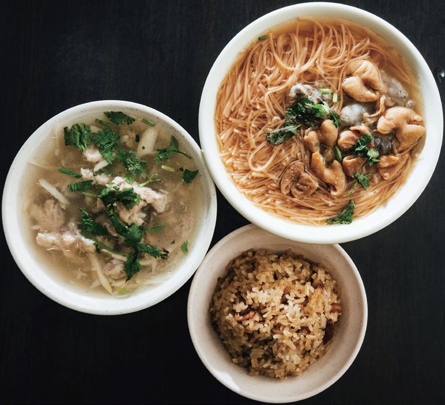 Oyster vermicelli, pork thick soup, and oily sticky rice