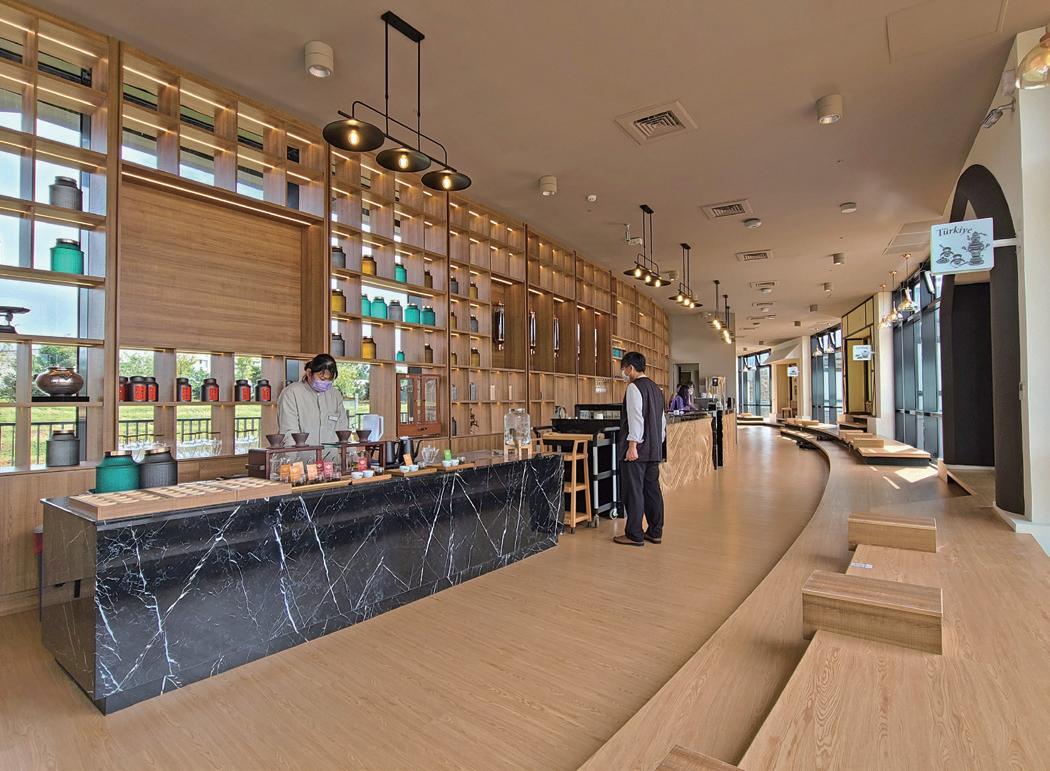 These days, Wang has repositioned the shop somewhere between being an herbal clinic and a trendy tea shop. Behind the counter, herbal bouquets are displayed in wall-mounted transparent domes, and in the back half of the space, floorto-ceiling shelving is filled with tins carefully labeled in earthy shades – some patinaed and battered after literally decades of service.