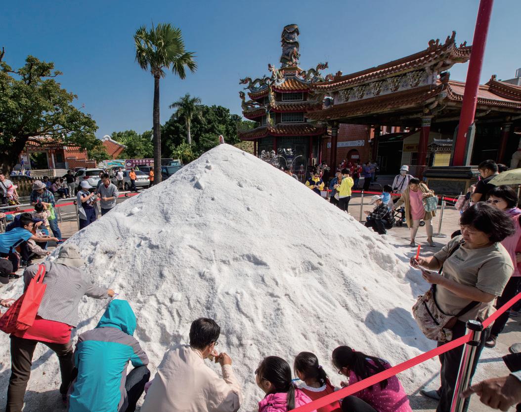 For more than 300 years, producing salt from seawater was an important industry in the southwest of Taiwan. The industry ceased to exist in 2002 after Taiwan’s WTO entry, but the Jingzaijiao Tile-paved Salt Fields in Tainan City’s Beimen District remain in place as a popular tourist attraction. In 2004, the annual Kungshen Wangye’s Salt for Peace Festival was held for the first time by the Southwest Coast National Scenic Area Administration to celebrate the old industry and to highlight the region’s traditional beliefs and rituals related to salt. Activities take place at the salt fields and at the Nankunshen Daitian Temple (about 5km away), including a procession between the two places, captivating dragon dances, and the giveaway of thousands of auspicious sachets filled with salt. swcoast-nsa.travel