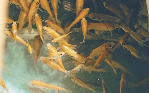 Single-story “Tree Spring Fish,” sitting beneath large shade trees, is beside Tangweigou Park’s foot-soak section (which has its own fish pools). Many Jiaoxi fish foot spas provide food and drink; here, picnic-table tops are fitted snugly over the small pools, on which you can place shaved-ice treats, slushies, fruit juices, coffee, tea, and cong you bing (scallion pancakes) while the fishies feast away in the hot-spring water.