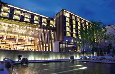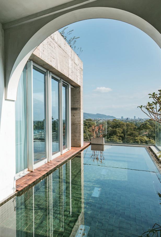 Since its opening in 2005, the elegant Hotel Royal Chiaohsi has been queen of the Jiaoxi hotspring hotel ball. It’s positioned just outside the town atop the lip of a narrow mountain valley that spills out onto the Lanyang Plain. The valley floor is higher, thus providing a tremendous sweeping view of the plain and iconic Turtle Island, far out to sea, from the hotel’s highceilinged, glass-wall View Western Restaurant, east-side rooms, and various outdoor pools.