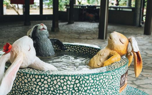 We’re headed into the cold season now, perfect for warming hot-spring dunks, but in the steamy Taiwan high summer there’s nothing better than a cold spring respite. The mountainbacked Su’ao Cold Spring Park complex, refurbished recently, is meant to resemble an ancient Roman open-air spa. There are free foot baths in the front area. Along the rear is a long, large pool below ground level (fee), with water deep enough for upto-neck sitting soaks. The naturally bubbly carbonated mineral waters here, about 22 degrees Celsius, are a global rarity, the only other such cold spring found in Italy. During Taiwan’s Japanese colonial period (1895-1945), Japanese merchants built the island’s first soda drink factory next door, using the nature-provided carbonated waters, which are safe to drink.