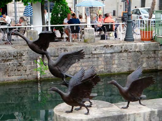 Troyes zelf inderdaad bezoek waard. De Sint-Pietersen-Sint-Paul kathedraal kende ik al omdat ik daar mijn stempeltje was gaan halen en (belangrijker!!!) 2 Euro diende te betalen aan de koster om in mijn plaats naar mijn “Jacques” te bellen maar het is meer dan aangeraden met behulp van stadplannetje een dag uit te trekken voor de uitgebreide stadswandeling. Fijne en feeërieke waterpartijen en standbeelden en kunstwerken (Lili, La Ribambelle Joyeuse, le Coeur de Troyes…), maar zeker ook maison de l’Outil et de la Pensée Ouvrière en Musée Saint-Loup en als je dan toch in de buurt bent, vergaap je dan in Apothicairerie de l’Hotel Dieu le Comte. Ondertussen leer ik dat Troyes beroemd is voor zijn “School van… Troyes”. Voor de niet-specialisten : vanaf de 13e eeuw werd Troyes befaamd voor zijn brandschilderkunst. Momenteel is Troyes dè textielstad van Frankrijk. Trouwens in het Frans is Troyes een jongensnaam en betekent ‘met gekruld haar’, een krollenkop dus. En natuurlijk de o zo typische vakwerkhuizen die in feite dateren van na 1524 omdat in dat jaar een grote stadsbrand de stad heeft herschapen tot een Gazalandschap! Zo gezellig en echt keuze te over om er op één van de tientallen terrasjes te bikken, … en te klinken! Dan naar huis om wonden te verzorgen, andere achterstallige werkzaamheden in te halen, en enkele weken later de draad opnieuw op te pikken…