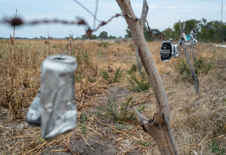 Tin cans attached to fences is one way that local people try to reduce elephant incursions into their crop fields