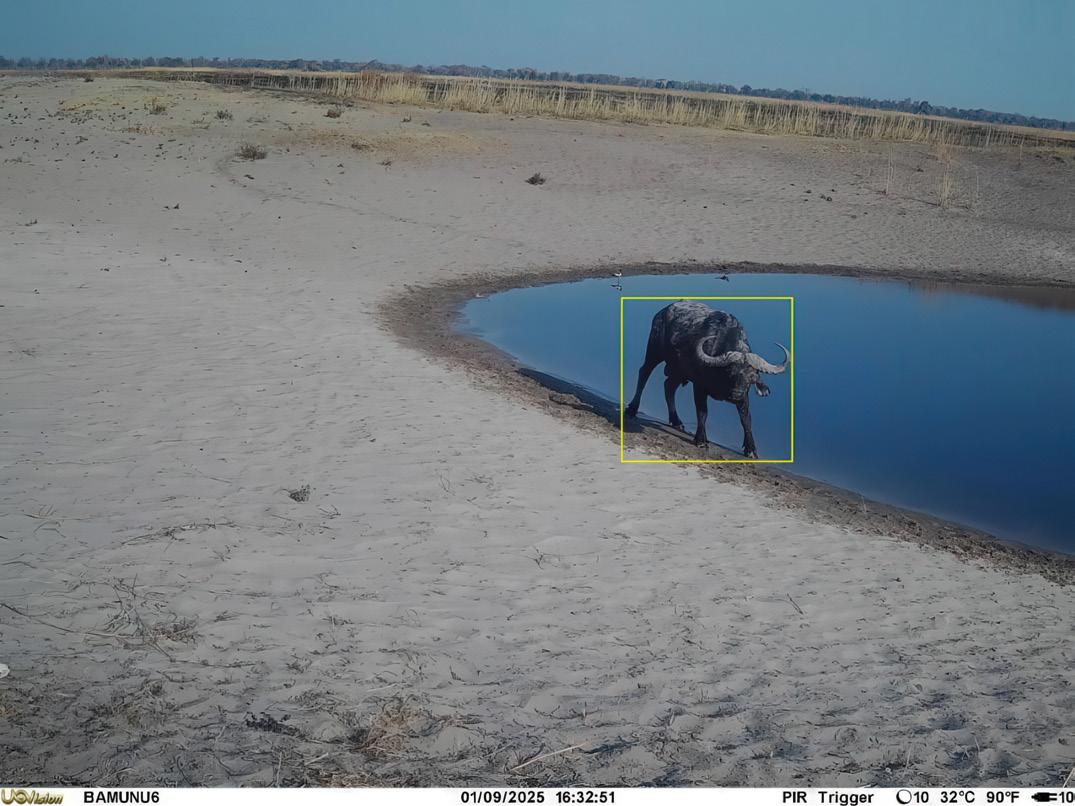 Namibia has long been a global leader in community-based conservation. Since the 1990s, communal conservancies have empowered local people to manage and benefit from their natural resources. Today, camera traps are adding a new layer to that legacy. Using new-generation camera traps that submit images in realtime, we can already gain valuable insights into wildlife activity across Bamunu, Sobbe, and Kwandu Conservancies. These motionsensitive devices quietly capture animals in their natural habitats, helping conservancies confirm the presence of species and monitor biodiversity. From buffaloes to towering elephants, the cameras are