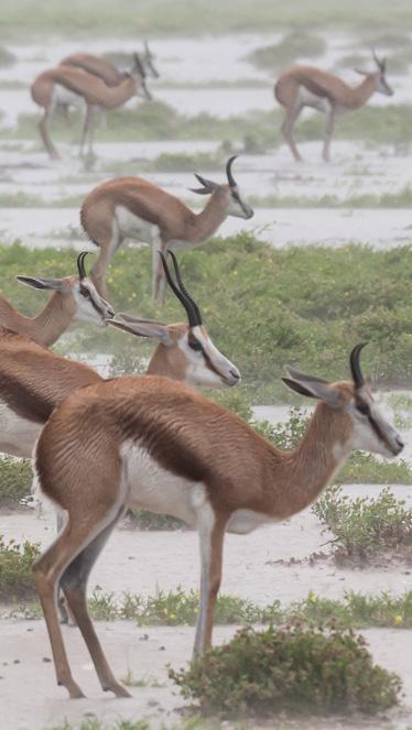 animal species roam Namibia’s wild spaces. In December, after the first rains, wildlife thrives as fresh vegetation carpets the savanna.