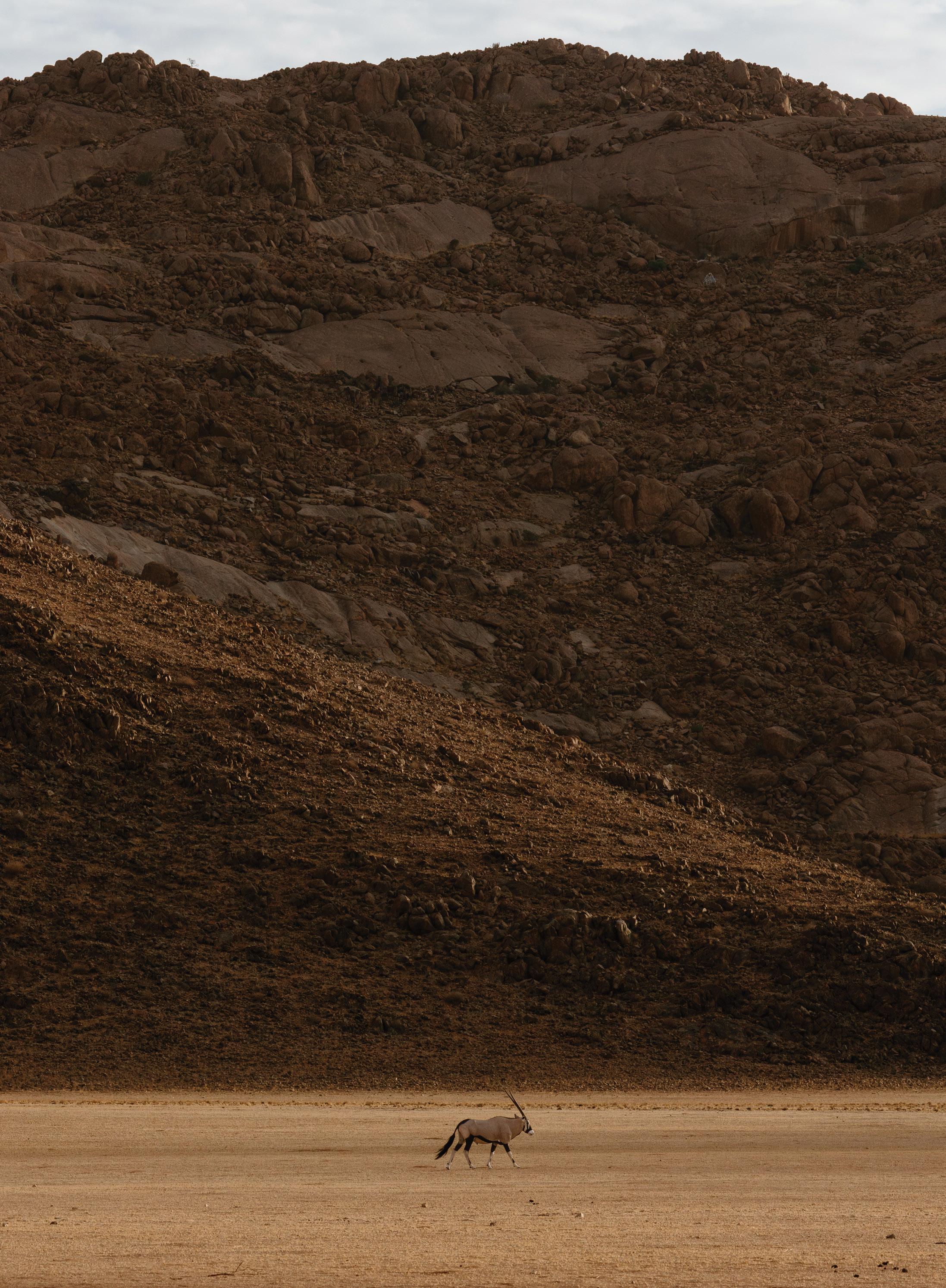 In the vast desert of southern Namibia, a lone oryx crosses the open plain. Dwarfed by space and stone, it walks with quiet purpose, reminding us just how immense and humbling this landscape truly is.