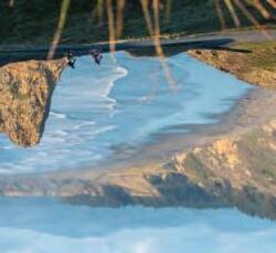 The Oregon Outback Scenic Bikeway o ers an immersion in a part of Oregon too few people visit and enjoy. For the hardy rider, it’s a chance to take in panoramic views, revel in quiet solitude and traverse rugged and challenging terrain. The remote route is nestled in the untrammeled Warner Mountains, where the forested Cascades meet the high-desert basin and range. The “lollipop” configuration starts and ends in