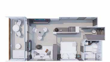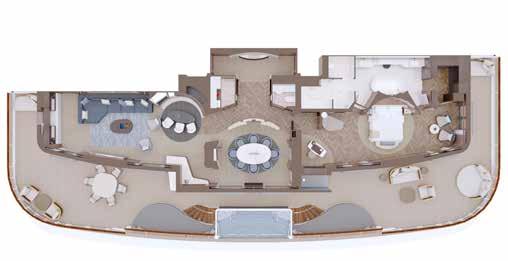 TOTAL SUITE AREA: 77 sqm (829 sq ft) – decks 8, 9 / 81 sqm (872 sq ft) – deck 7