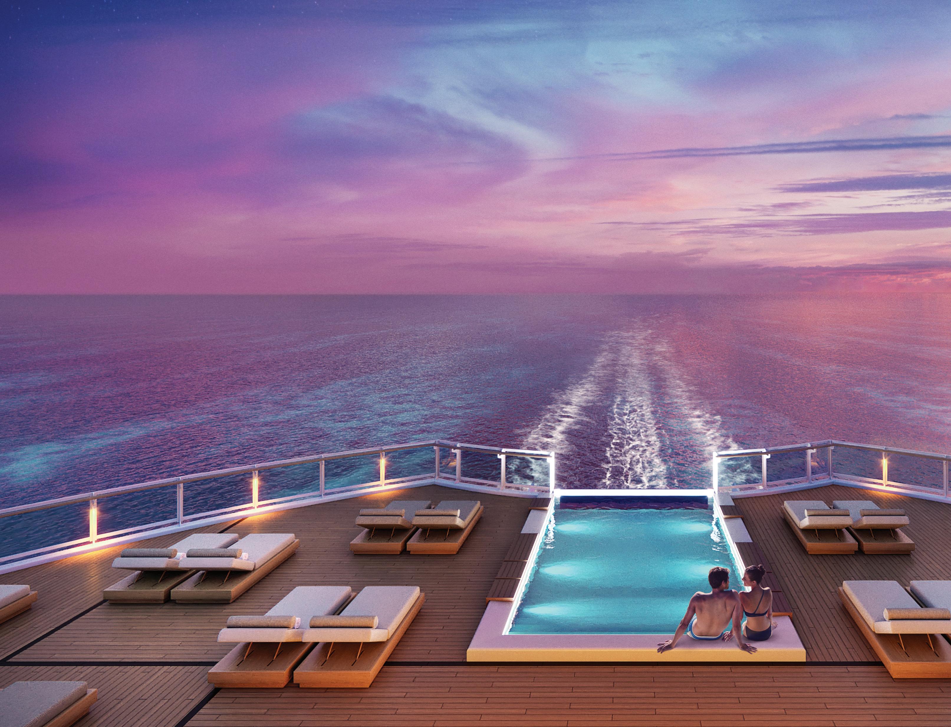The main pool is found on Deck 17, as well as two additional infinityedge pools. On the same deck is the Vibe Beach Club, an adults-only, pay-for-entry area with loungers and two more infinity-edge pools and hot tubs.