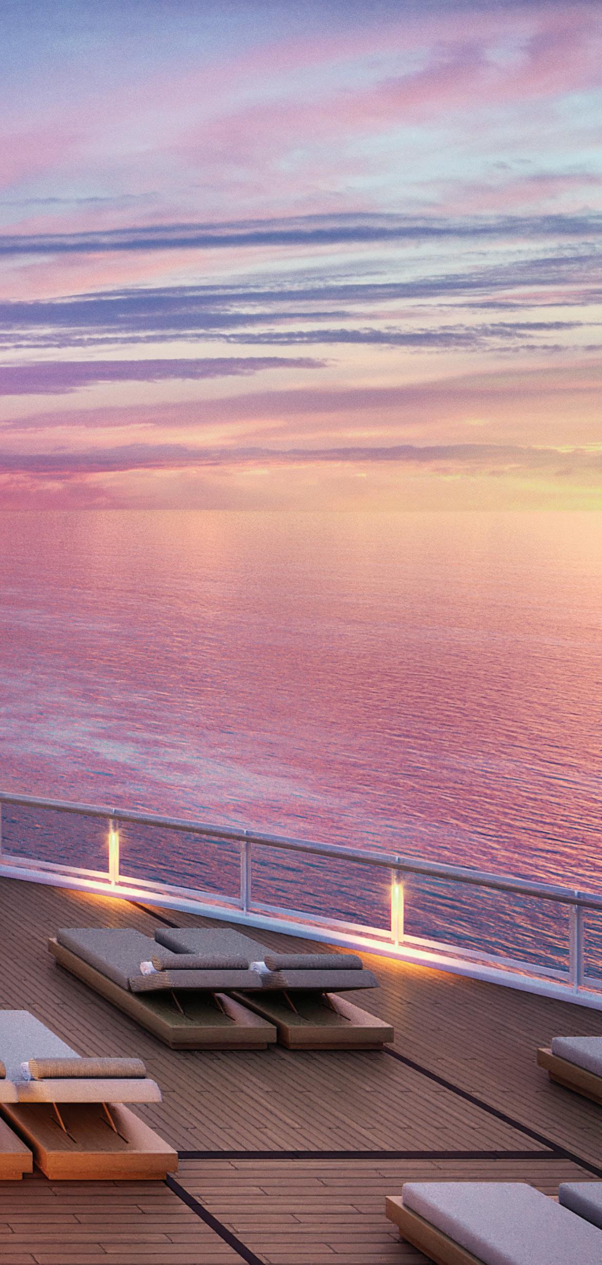 For sun lovers, Deck 8 is the place to be. The entire deck is open and ocean-facing, and its key feature is Infinity Beach, with loungers surrounding an infinity-edge pool (one on each side of the ship). Deck 8 makes for a pleasant stroll, passing the glass-floored Oceanwalk, a modern sculpture garden and the aft-facing Soleil Bar, perfect for cocktails at sunset.