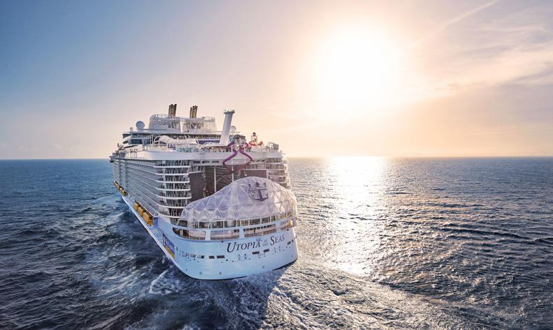 Royal Caribbean International’s Utopia of the Seas has arrived in Port Canaveral ahead of its official debut on July 19. Dubbed as the ultimate short getaway, the ship arrived in port with more than 2,000 crew members celebrating across the pool deck. A naming ceremony with Utopia’s godmother, Grammy-winning artist Meghan Trainor, is set to take place before the ship begins sailing threenight weekend and four-night weekday vacations. Utopia of the Seas is Royal Caribbean’s first Oasis Class ship to offer short getaways. Guests can get away on Utopia any Friday or Monday.