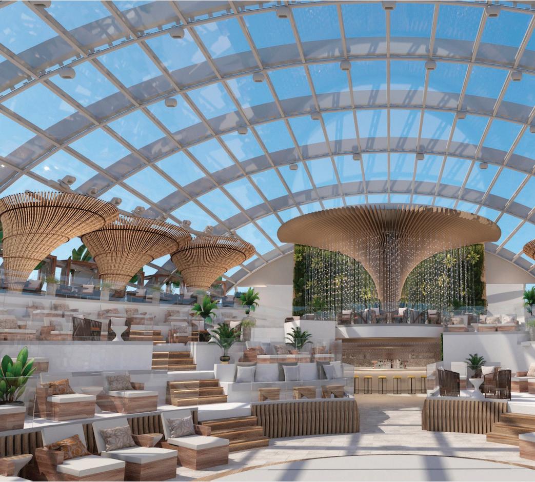 covered deck and firstof-its-kind true glass-enclosed dome is the first to ever be constructed on a cruise ship.
