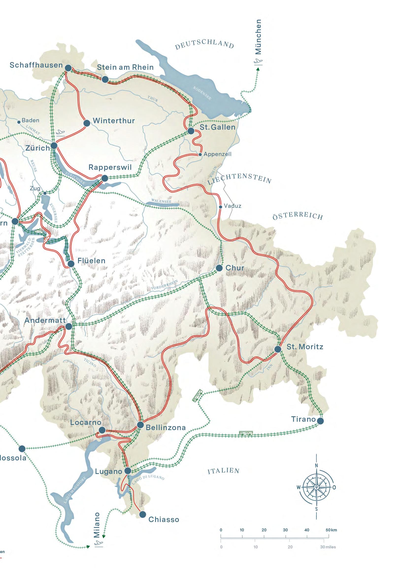 Extensive travel through Switzerland