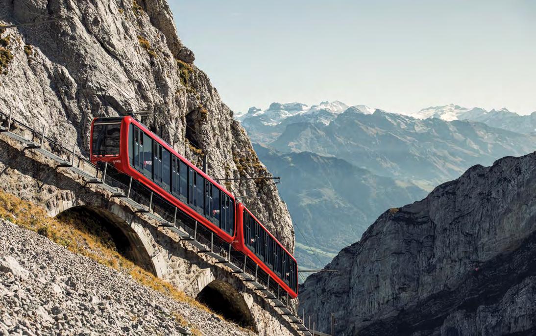 ■ Discover Switzerland by public transport: Did you know that 95% of Swiss households are within a 5-minute walk of a public transport stop? Hardly anywhere else can you get to a destination more easily and comfortably than in Switzerland. Stops even in remote places, perfectly coordinated connections and unbeatable panoramas make public transport an experience in itself. The "Grand Train Tour" comprises the most beautiful panoramic journeys by public transport.