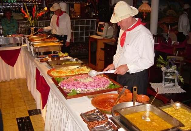 •BuffetDinner: as arroz con pollo, refried beans, plantains, and m irit) is included, along with a cold beverage and a traditional coconut dessert.