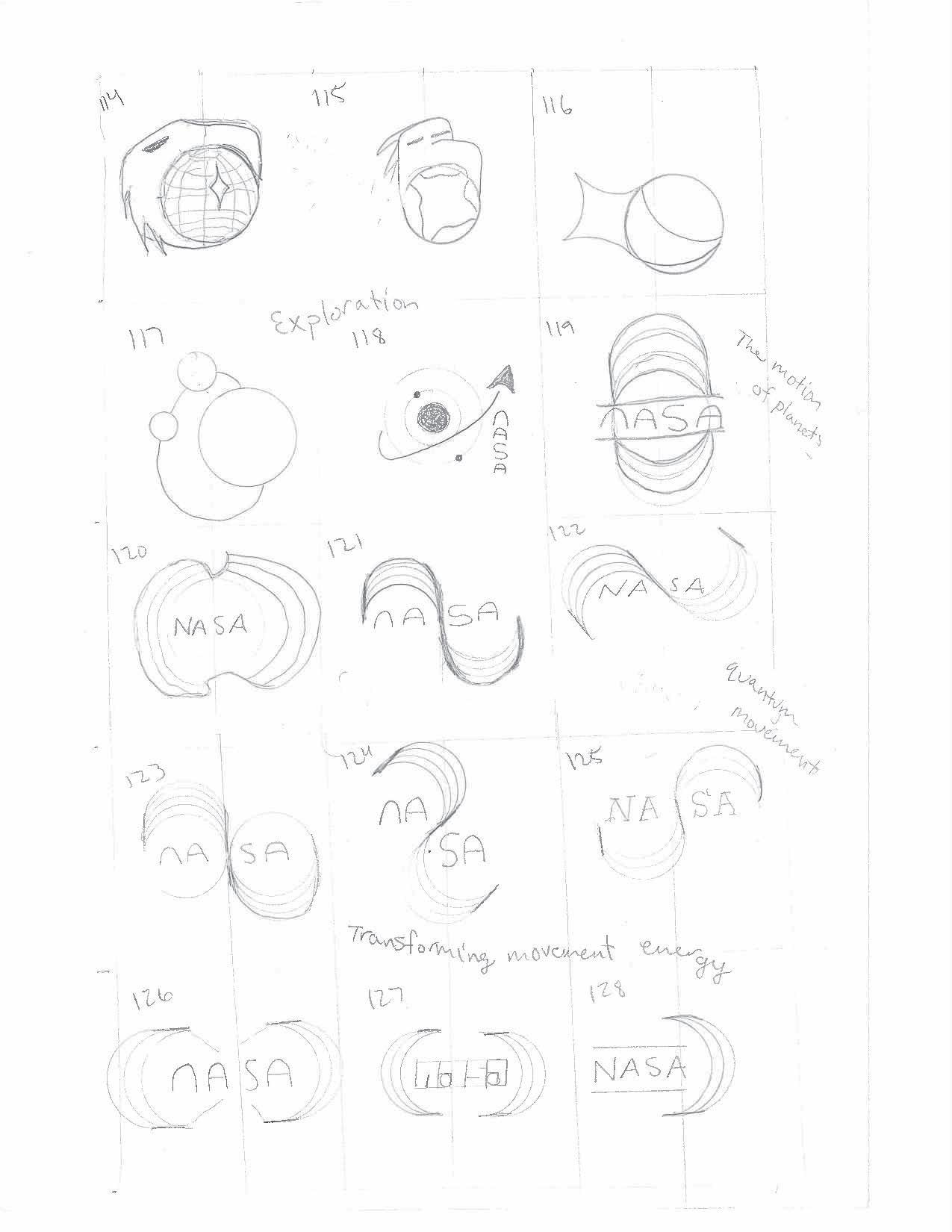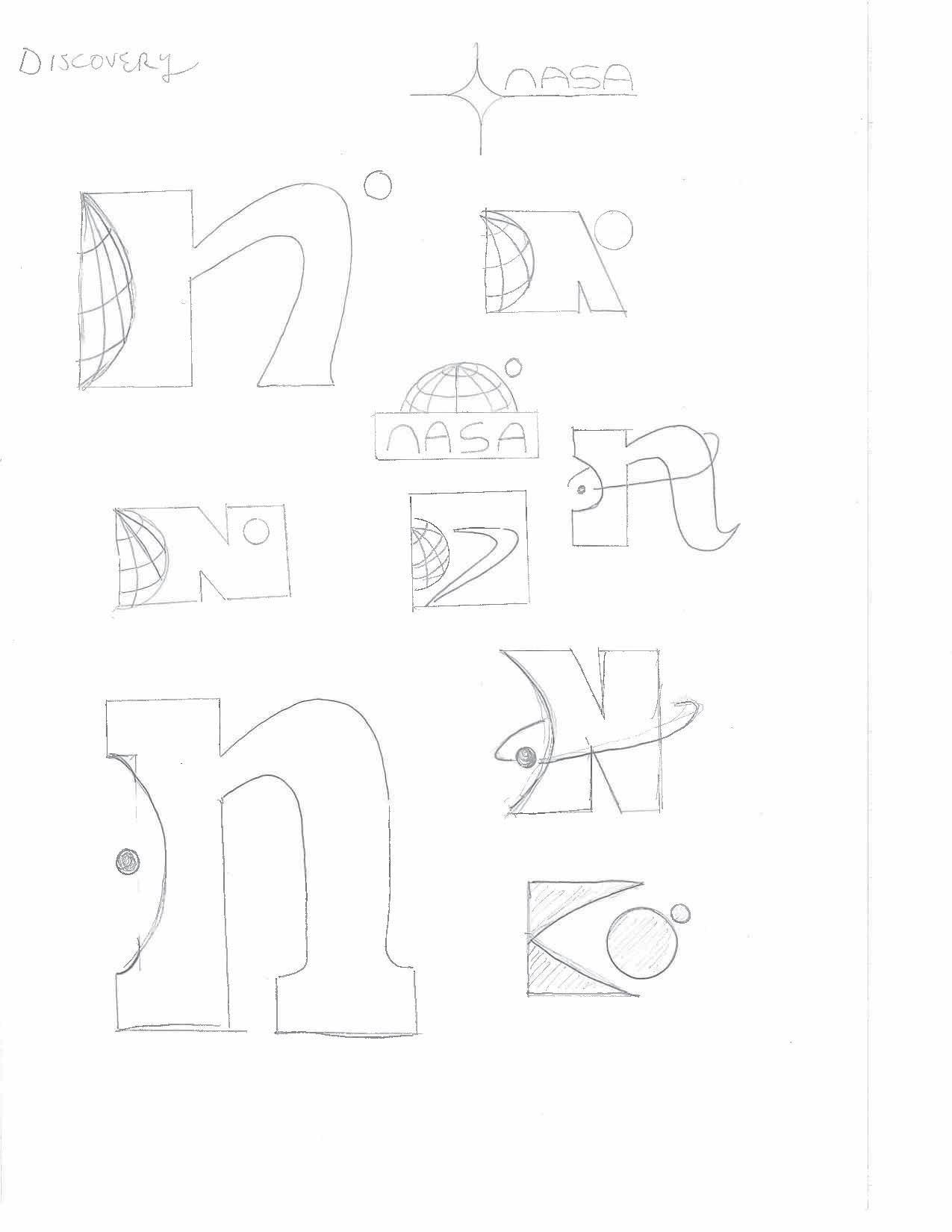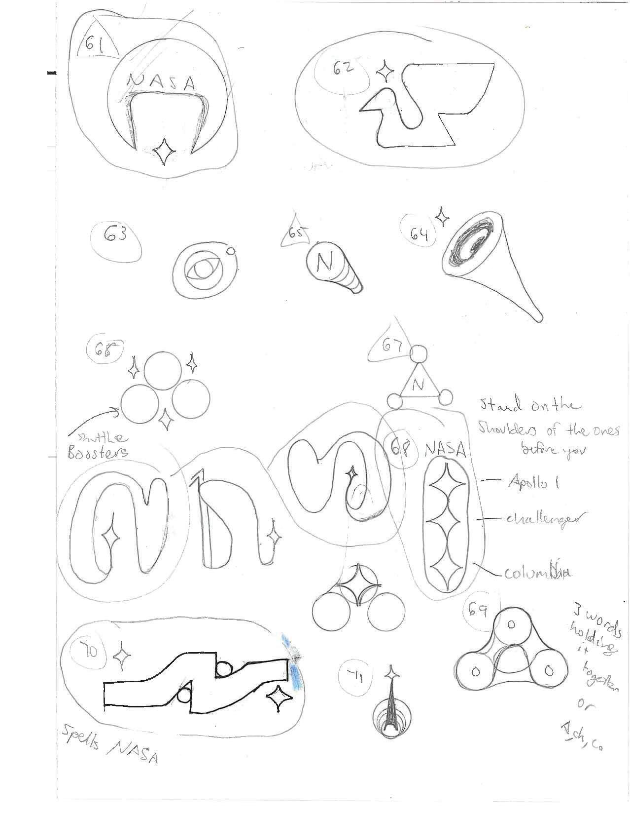 My idea here was to start with anything. I went with the first idea that came to my mind regardless of the relevance. My first big idea was to use the letter “N” and explore the letters of the word NASA and how they might fit together.