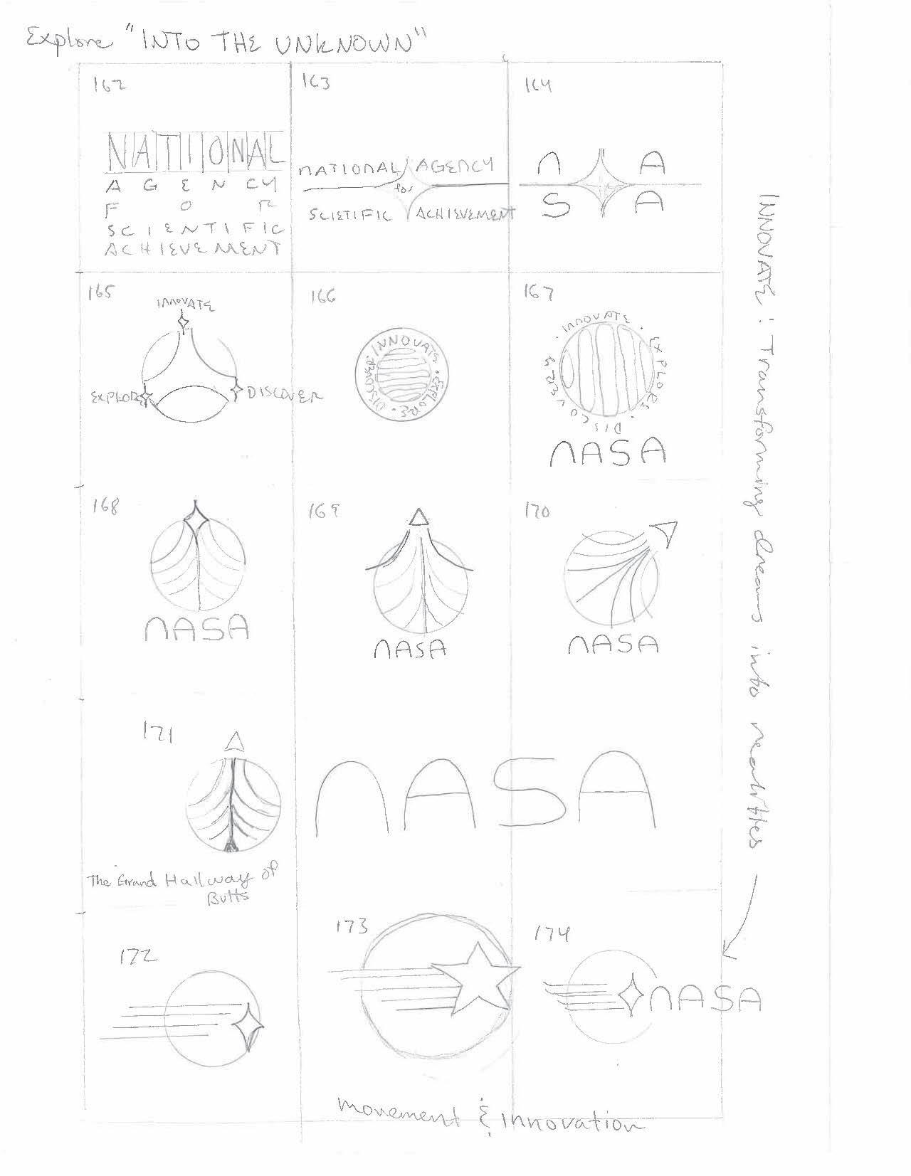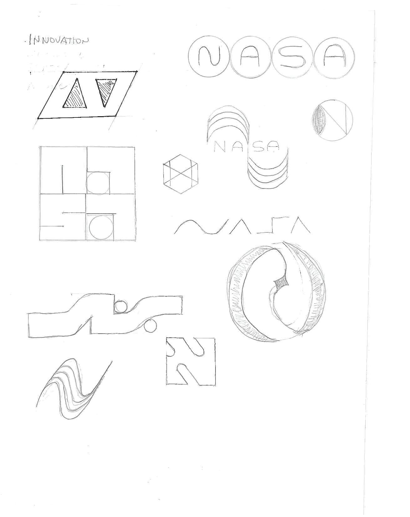 The stream of ideas regarding the letter “N” started to fade. So the exploration anchored into the keyword innovative. Is there something modern and tech looking? The circles represent a planet and the lines are different ways at attempting to spell NASA in a new and innovative way.