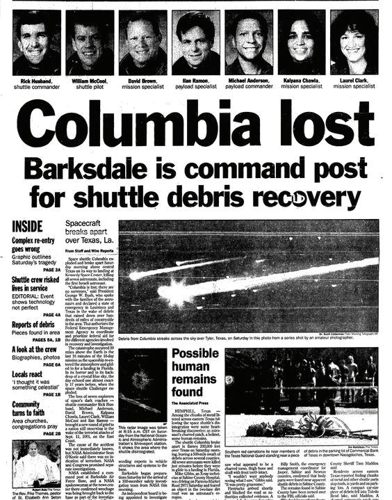 First reusable rocket by SpaceX. 2003 Shuttle Columbia explodes killing all members on board.