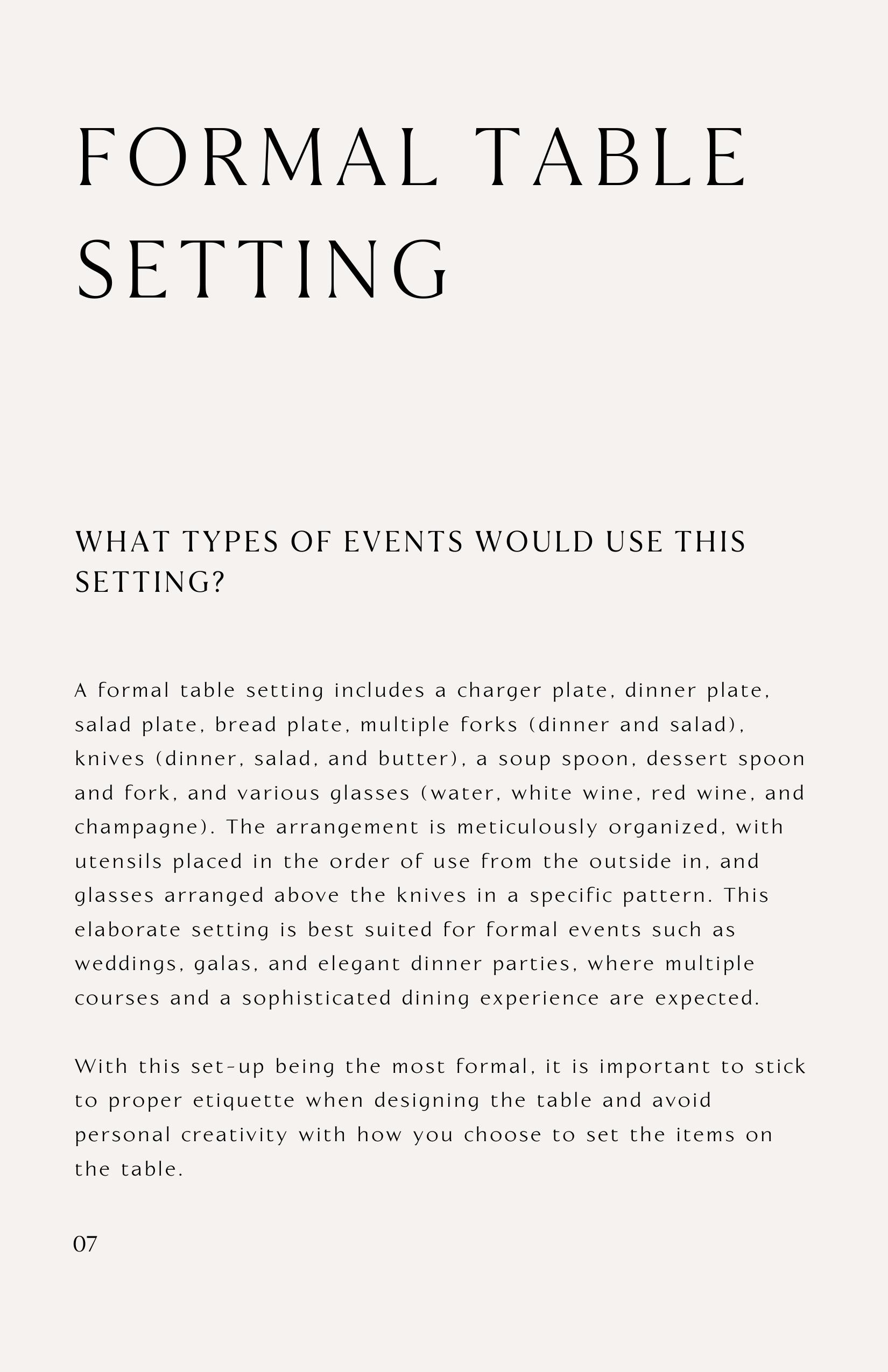 Flex your etiquette skills and ensure that you're never caught with a poorly set table with our filed guide to setting the perfect table. From different formalities to helpful tips. this guide encompasses the quick and dirty details for setting a table.