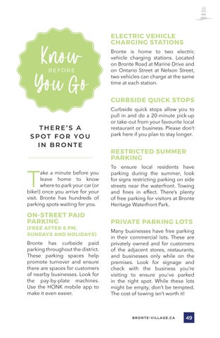 ake a minute before you leave home to know where to park your car (or bike!) once you arrive for your visit. Bronte has hundreds of parking spots waiting for you.
