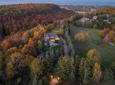 EXPERIENCE LUXURY & NATURE. This exquisite 7-bedroom, 8075 sq ft estate is nestled on 6.37 acres of stunning natural beauty, surrounded by conservation trails. This exceptional bungaloft o ers grand luxurious living spaces, a main-level primary retreat, a fully finished walkout basement with self-contained in-law suite, and state-of-the-art (low cost) geothermal heating and cooling. Step outside to a resort-style backyard featuring a 20 x 25 ft heated pool, waterfall and lush landscaping.