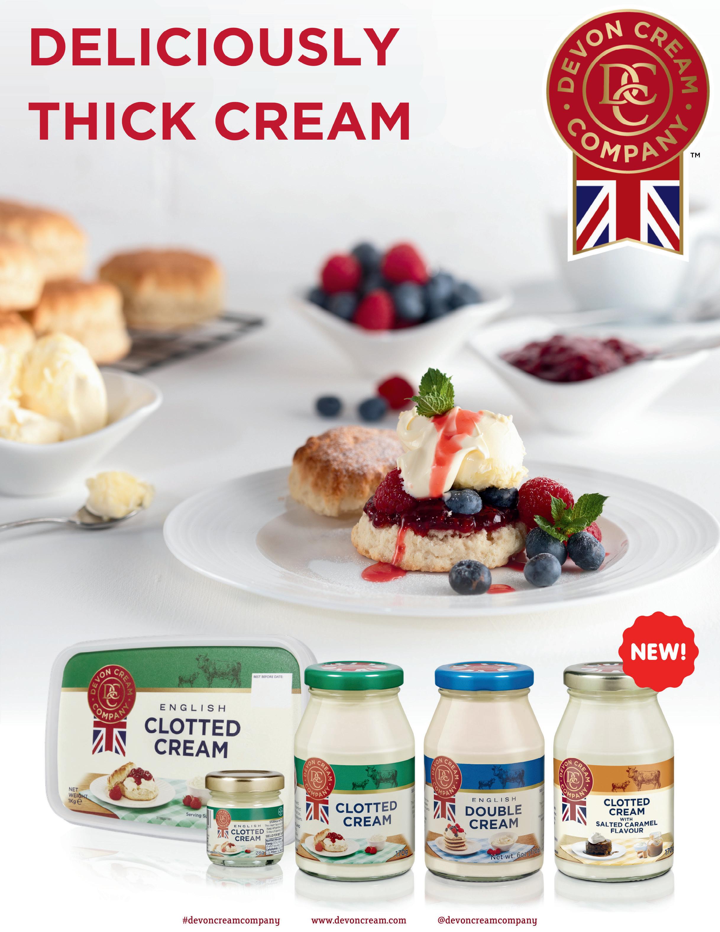 CLOTTED CREAM WITH SALTED CARAMEL: Luxuriously thick and deliciously sweet, perfect on pancakes, chocolate brownies, and pecan pie.