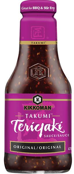 Kikkoman, makers of Canada’s #1 Soy Sauce* and Canada’s Original Teriyaki, proudly presents a fresh new look for our line of Takumi sauces. They’re rich, thick, and ready to take teriyaki to a whole new level of artisan appeal,