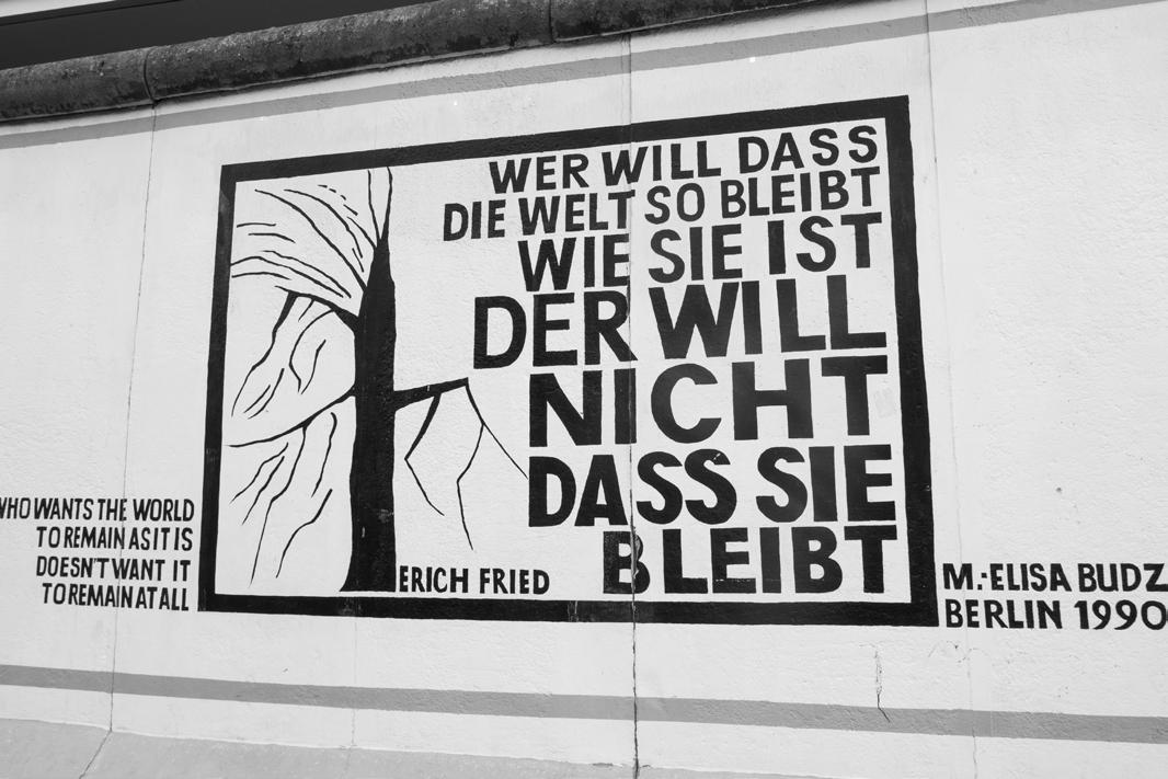 From both sides clear, unified messages emerge from the separate artworks: demands for freedom and condemnations of war, violence, and oppression. The euphoria and hope that came with the dismantling of the wall is clear from the expressive styles and powerful slogans. The wall captures the city’s painful history and its hopeful spirit for change. WA