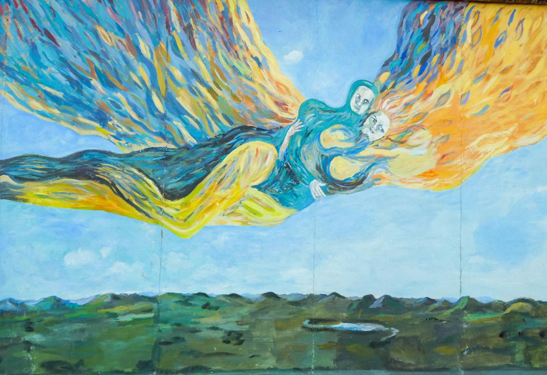 When visiting, you are able to freely walk alongside the wall, and observe the 105 artworks. Wandering along provides a commentary on the ideas, emotions and events borne out of Berlin’s division. Some messages are clearly inscribed on the wall, speaking directly to the viewer. Elisa Budzinski’s piece incites action, with the bold, black words ‘He Who Wants the World To Remain as it is doesn’t want it to remain at all’. Ines Bayer and Raik Hönemann’s piece demands us to overcome prejudices, with the slogan ‘Many walls need tearing down’. Some messages are evoked with more subtle visuals. Kani Alavi’s ‘It Happened in November’ depicts the events of November 9,1989 itself: the powerful surge of crowds passing through the wall for the first time in 28 years, following Berlin’s division captures the urgency of the people to overcome division. ‘Waterfall’, by Imre Gábor, is a beautiful abstract blue painting which uses imagery of water as a symbol for revolution.