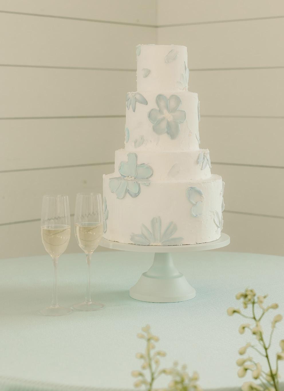 KPT Event Planning design is centered around a soft, elegant palette of “Hues of Blue,” creating a serene and refined atmosphere. The décor blends shades of sky blue, dusty blue, and navy, with accents of creamy white and subtle greenery for a natural touch. Tall floral centerpieces, featuring a mix of blue hydrangeas, white roses, and delicate greenery, gives the reception a grand and airy feel. The pale blue linens, with a simple yet sophisticated table setting complements the natural tones of the wooden chairs. @kpteventplanning