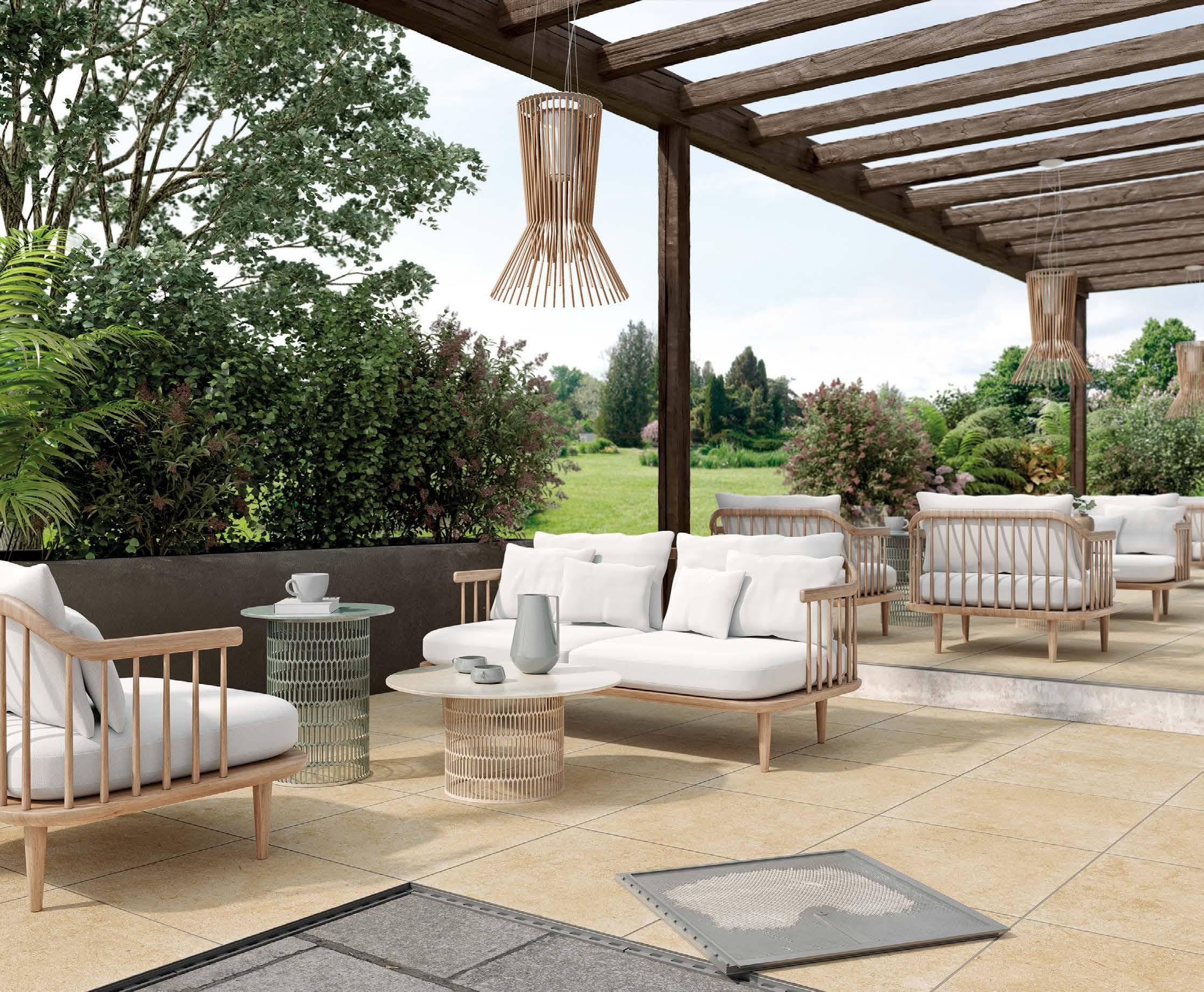 Die grossformatigen, 20 mm starken Feinsteinzeugplatten sind in einen Polyurethanträger integriert; an den Kanten befinden sich ineinander steckbare Fugen, wodurch die mühelose, rasche Verlegung ohne Zement oder andere Kleber ermöglicht wird. Dadurch entsteht eine in sich stabile Fläche. Lästiges Unkraut zwischen den Fugen gehört zudem der Vergangenheit an.
