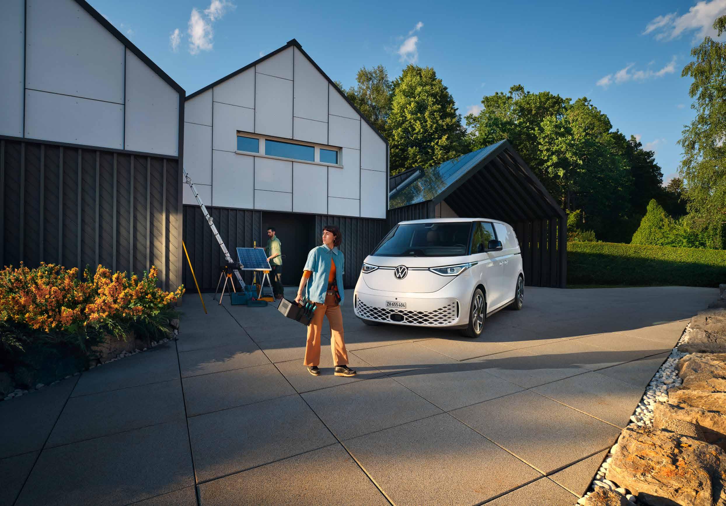 brennungsmotors sorgt ein batterieelektrischer Antrieb für sanften, emissionsfreien Vortrieb – ein wichtiges Signal für die Zukunft nachhaltiger Mobilität. Jan Schweizer, Geschäftsführer, erklärt die Vorteile: «Im Innern des ID. Buzz