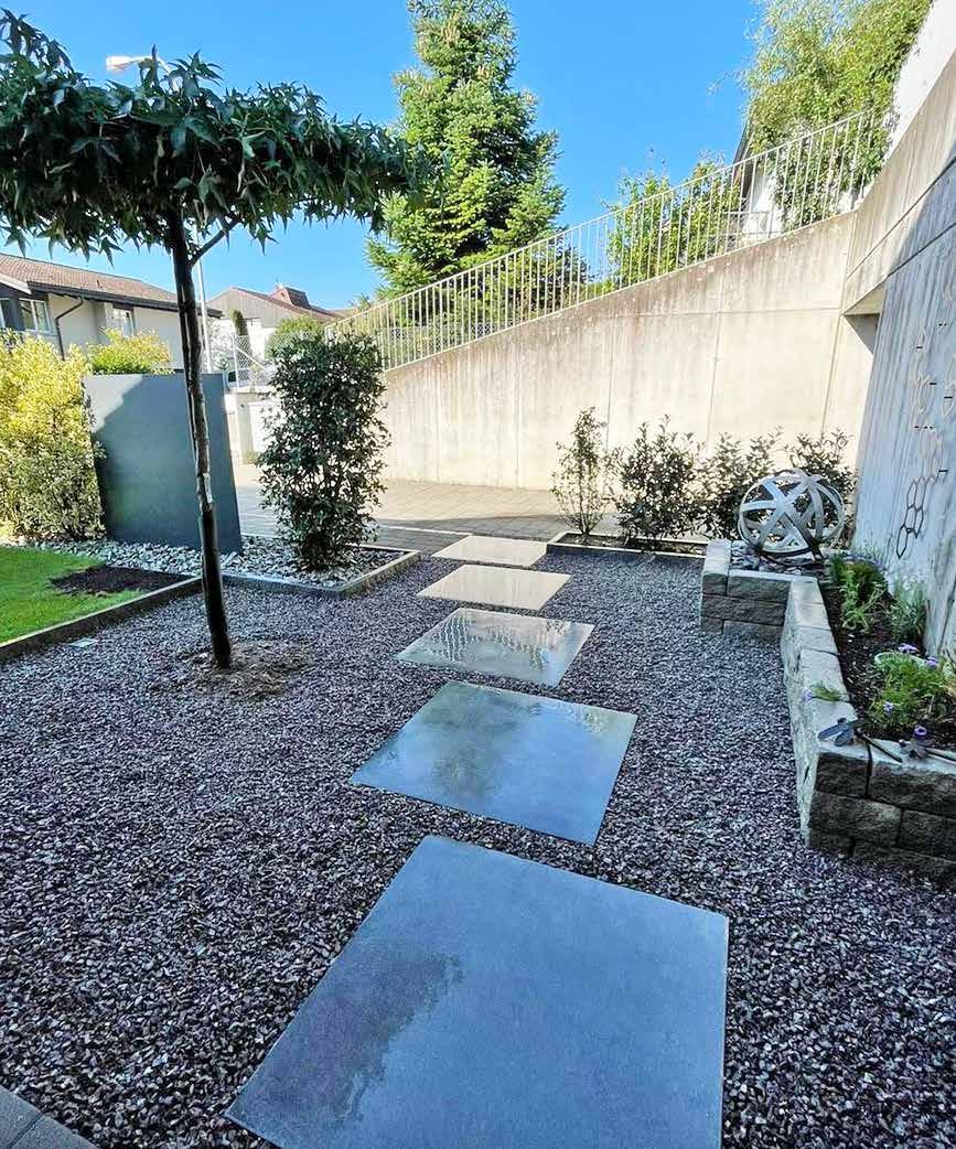 Schlussprojekt, das den Wünschen der Kundschaft entspricht. Neben unserer Fachkompetenz in der grünen Branche bieten wir zusätzlich die Themen Regenwassernutzung und Winterdienst an.» Marius Brodbeck erklärt: «Wir sammeln das Regenwasser und bereiten es als Trinkwasser auf, das aus dem Wasserhahn kommt.» Diese Möglich keit ist eine langfristige Lösung zur