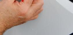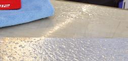 Zur endgültigen Fixierung des jeweiligen Folienteils das Verklebe-Fluid mittels eines Rakels mit Filzrand, von der Mitte aus zu den Rändern ausrakeln. Etwaige Luftblasen ebenfalls mit dem Rakel von der Mitte zum Rand hin herausstreichen.