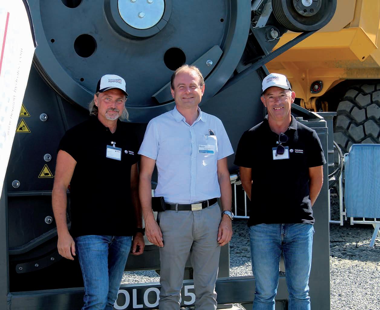 Baustellenkoordinator Calogero Arnone, Kranfahrer Peter Hoffmann und Polier Calogero Cusumano sind mit der Performance des Sennebogen 6300 HD sehr zufrieden.