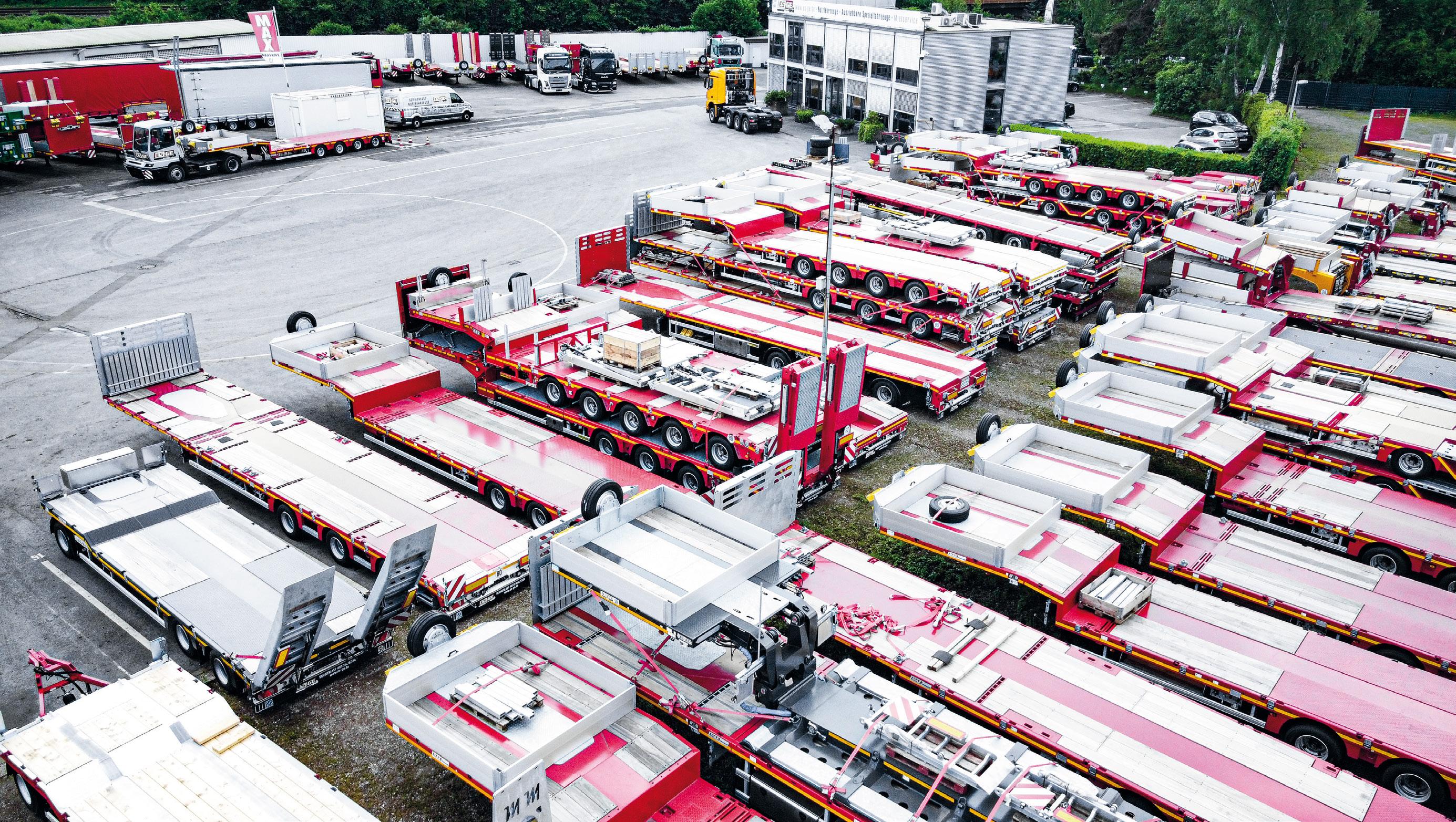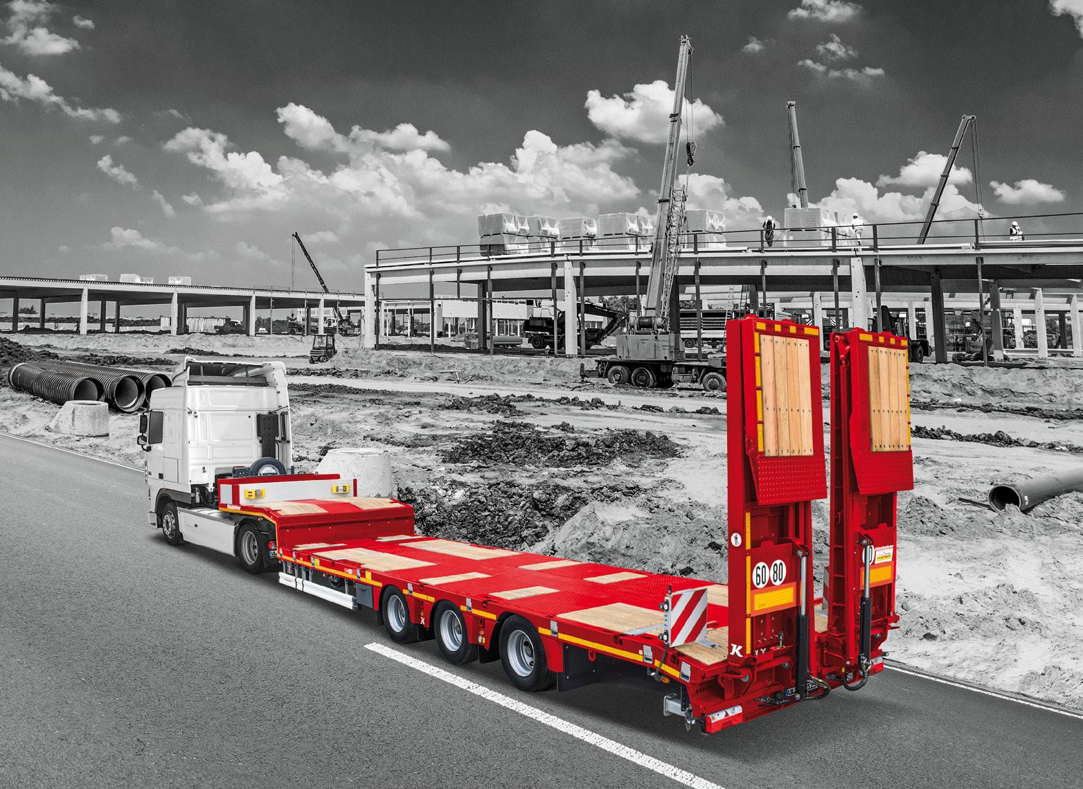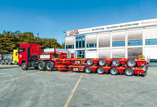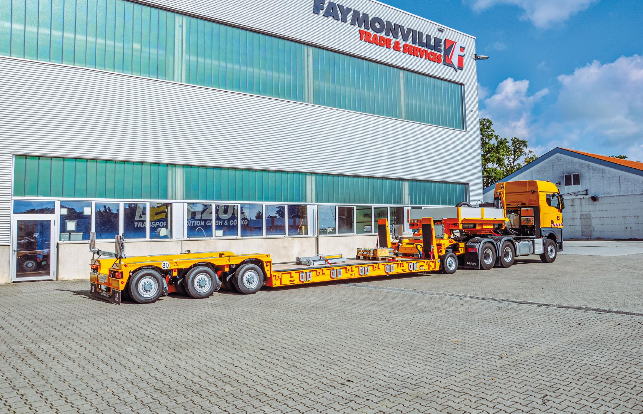 95 Kässbohrer // Konstruiert für Flexibilität und Sicherheit: Ausziehbare Tieflader von Kässbohrer 96 Faymonville // Im Schwanenhals integriertes Fahrwerk für maximal kompakte Gesamtzuglänge