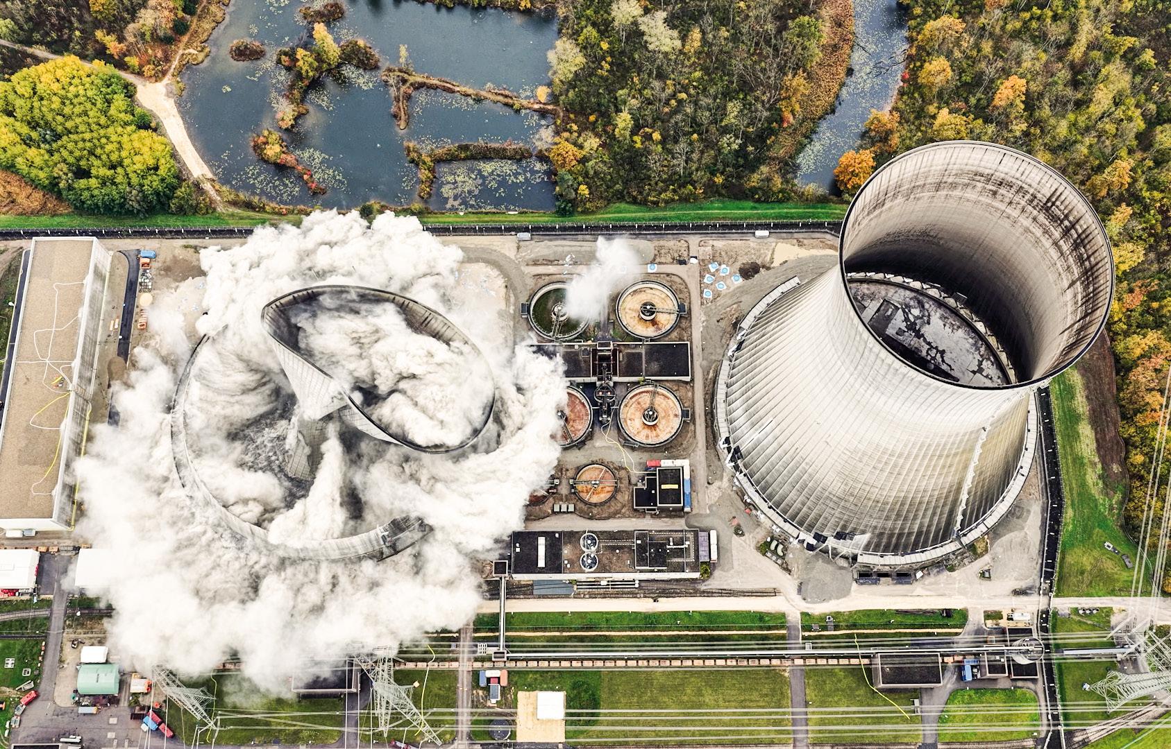 Sprengung der Kühltürme des ehemaligen AKWs Gundremmingen
