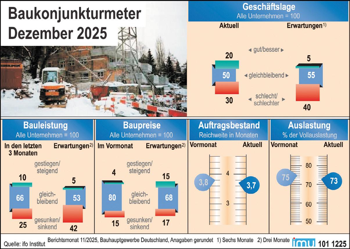enn in den Werkhallen die letzten Projekte des Jahres abgeschlossen werden und auf vielen Baustellen bereits Winterruhe einkehrt, gönnen sich viele eine wohlverdiente Auszeit. 2025 war für das Bauhauptgewerbe ein Jahr, in dem Umsatz und Aufträge zwar „besser als erwartet“ ausfielen, der Hauptverband der Deutschen Bauindustrie (HDB) zugleich aber von einem realen Umsatzminus und verhaltenen Geschäftserwartungen ausgeht.