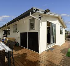 The current dwelling is a three-bedroom weatherboard home moved to the site several years ago. Its renovation included double glazing and an extensive interior upgrade creating a sophisticated beachy atmosphere with open plan living linking a 'loggia' style conservatory with pulldown sides and facing the deck.