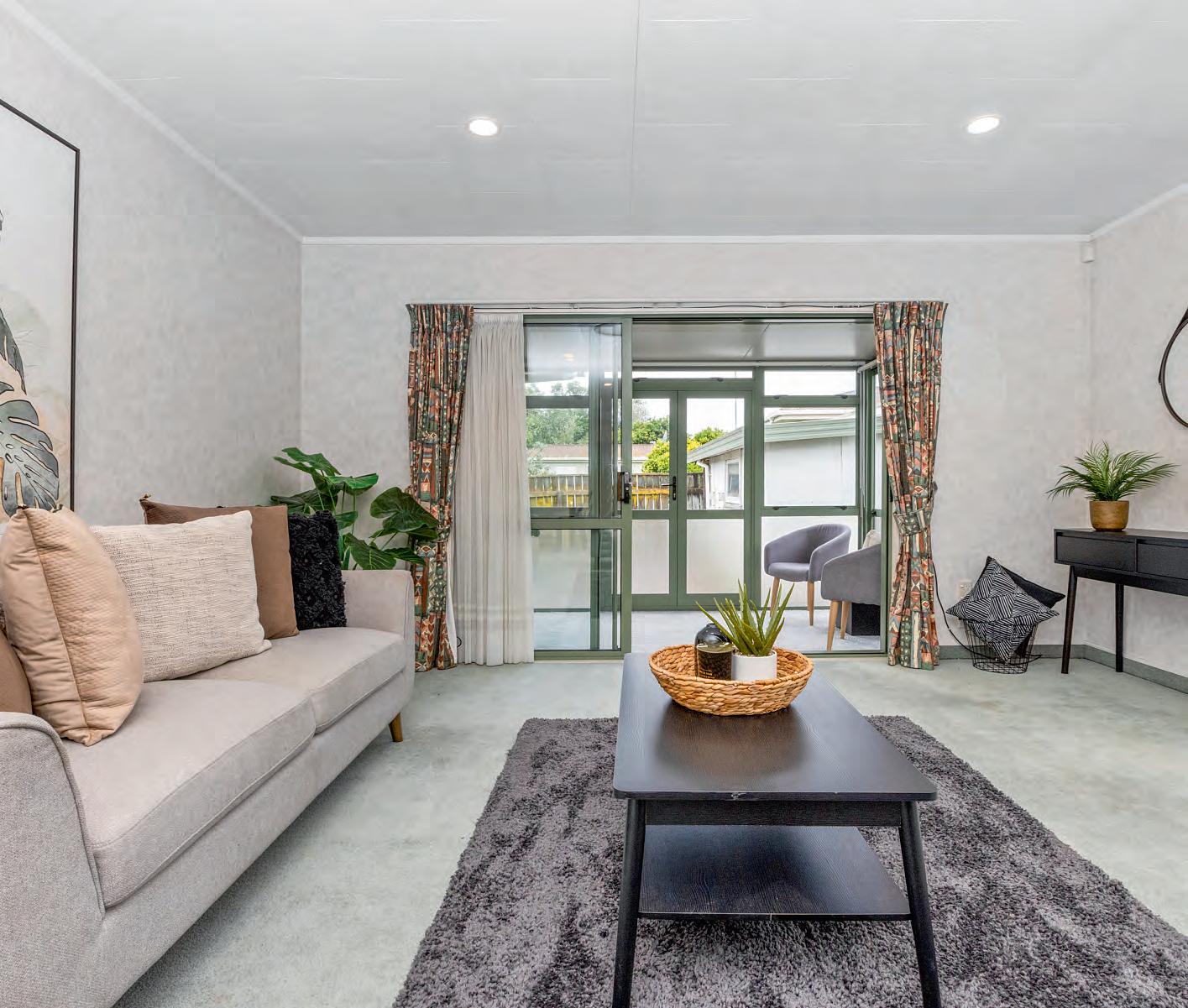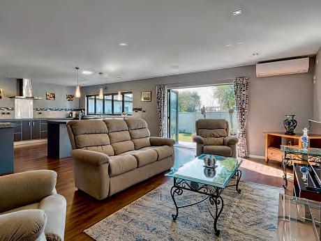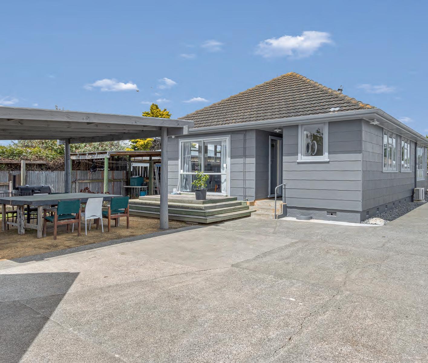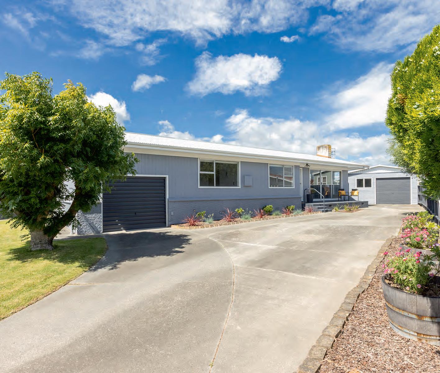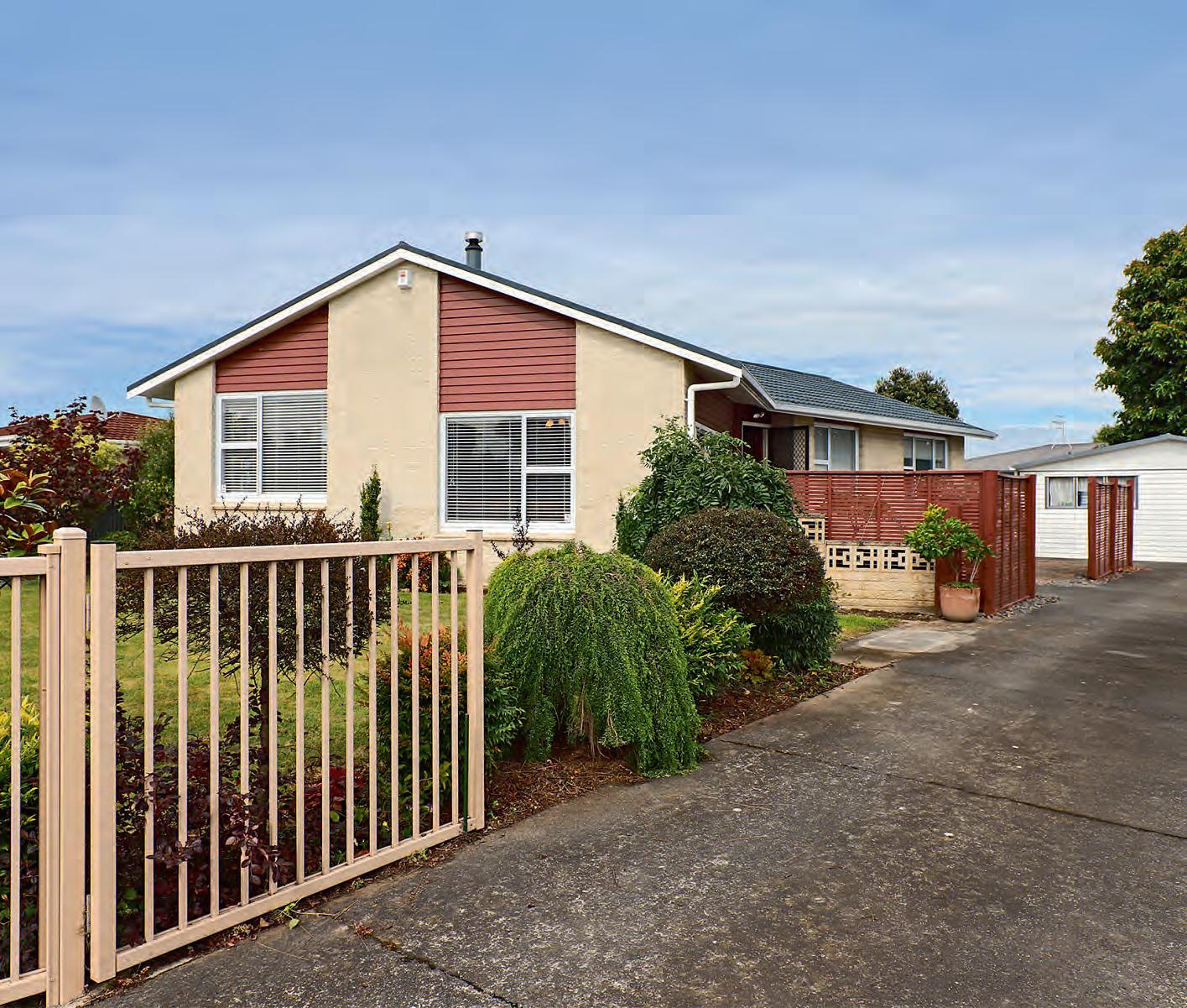 Fabulous family living, this low-maintenance home will surely please. Offering three double bedrooms, modern integrated living and a separate second living, rumpus room or work-from-home office. Modern bathroom, separate laundry and separate toilet for convenience. Covered pergola to provide shade for entertaining, all on a private, sunny and secure backyard providing the ideal space for children or pets. The freehold 612 sq m (more or less) section is abundant with grape and passionfruit vines, feijoa, tangelo and raised vegetable patch. Heat pump/air conditioning unit and heat transfer system to keep you comfy all year round. Large garaging with extra storage and workbench. Conveniently located to shopping centres, supermarkets, schools and Anderson Park.