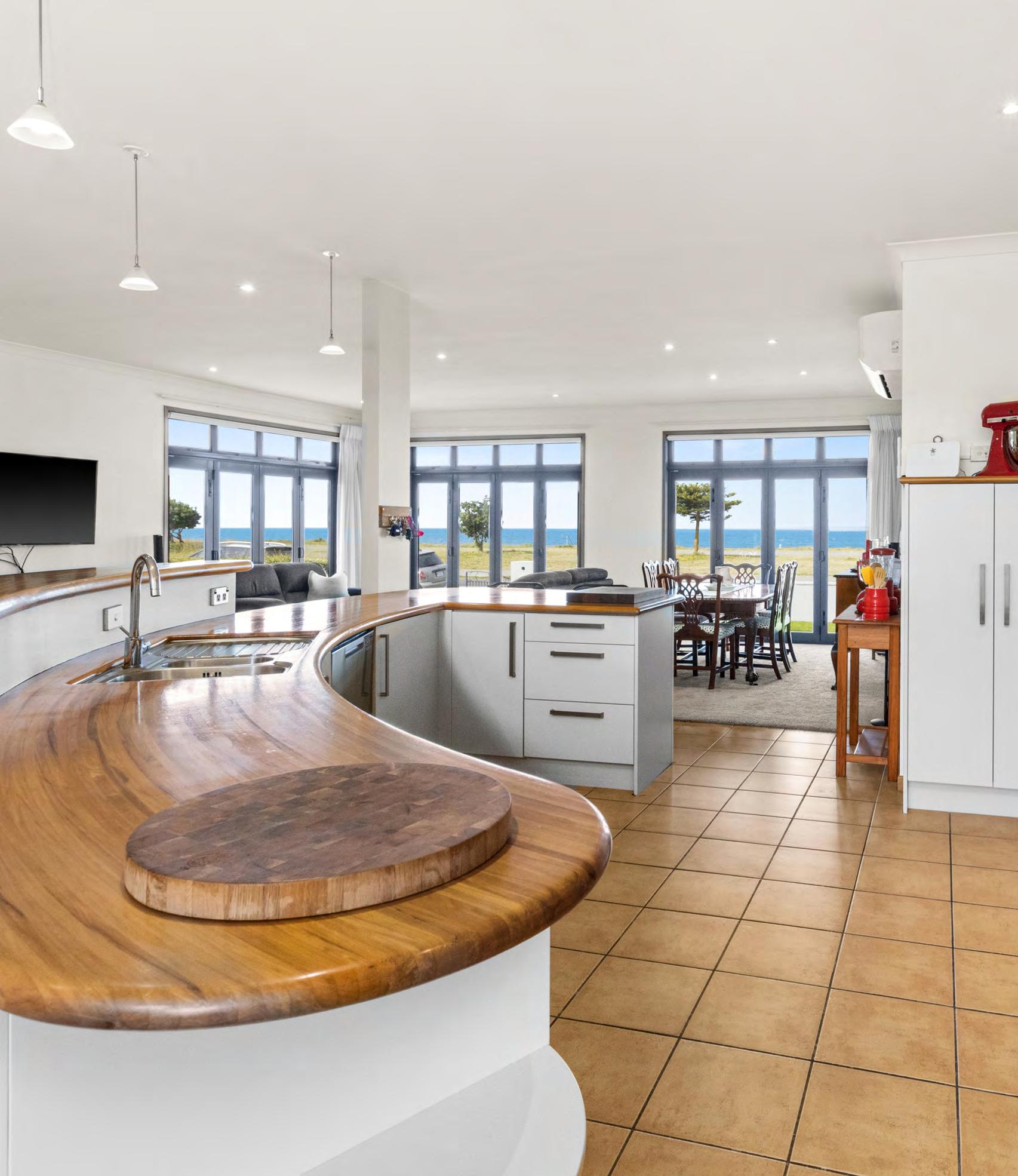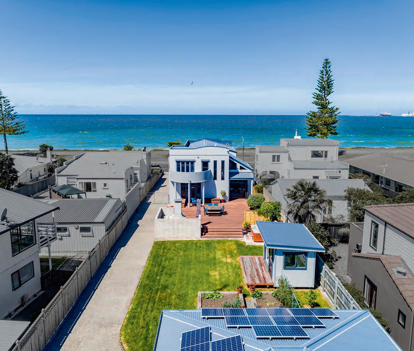 With direct access across the road to the beach and cycleway, you will love this wonderful property. Offering panoramic ocean views, this impressive home is set on a full section - a rarity in Westshore. Step into a light-filled, airy space where the curved rimu kitchen bench connects the dining and two living areas. Multiple bifold doors create a great indoor/outdoor flow to the front, side, and rear. From the modern, well-appointed kitchen, lounge and dining areas those breath-taking sea views are forever changing - and yours to enjoy at any time. Downstairs, there is a large double bedroom with ensuite, walk-in robe and doors to the rear deck. Upstairs, the spacious master bedroom offers a walk-thru robe and ensuite with a tiled walk-in shower and underfloor heating. Wake up, throw back the doors and step out onto the balcony to enjoy the magical sunrises then, in the evening, let the ocean lull you to sleep; quite simply sublime.
