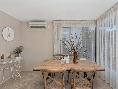 Located down a quiet cul-de-sac in a superb and sought-after area, within walking distance to Anderson Park, cycleways and wineries. A stone's throw away from supermarkets, the Greenmeadows shops and schooling. Hassle-free living in a generous-sized two-bedroom home for those wanting a carefree lifestyle. A wellthought-out and extra spacious design make for comfortable living. Sun-filled and tidy, the kitchen has a functional layout leading to the large dining and living areas. A private courtyard off the living area provides the ideal setup for all seasons. The real surprise here that is not so common with two-bedroom properties is the double garage and two off-street carparks. New carpet and drapes throughout make this well-positioned home move-in ready, while still offering the potential to add value. With the charming front lawn and low-maintenance garden, this freehold cross lease could be your ideal first or next home.